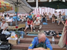 Підвозимо до Українського дому 50 пляшок мінеральної води, 5 кг яблук, 2 кг винограду. Прошу двох юнаків занести це до табору. Яблука розбирають за 2 хв. Андрій бере одразу 4. Два ховає у кишені, одне жує, іншим - пригощає друга. Воду ставлять під столом, який вважають кухнею.
