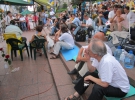 "До 1-2 ночі тут постійно співають, вірші читають, - каже Андрій. - О 6 всі підриваються, бо вмикають гімн. Після нього починаємо прибирання. Миємо сходи, збираємо сміття. Один міліціонер хотів причепитися, щоб ми звільнили Європейську площу і впустили сюди комунальників, аби прибрали. Ми спитали, де він бачить бруд - ніде немає окурків, жувачок і фантиків. У нас всюди чистота".