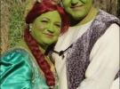Наречені були перевдягнуті у головних героїв мультфільму "Шрек", а близько сотні їхніх гостей наряджені в костюми друзів людоїда і Фіони.