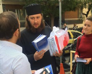 У третій день Архієрейського собору Грецької церкви вони роздають грецьким єпископам книжки про нібито силові захоплення церков на користь ПЦУ, повідомляє ТСН.
