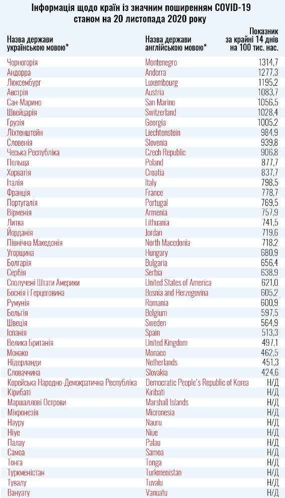 У червоній зоні лишаються США, Велика Британія, Франція, Болгарія, Швейцарія, Італія, Іспанія, Грузія, Чехія, Румунія, Бельгія, Польща, Португалія, Словенія, Чорногорія, Хорватія, Вірменія, Литва та інші.