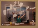 До фотографій на візку під'їжджає білявка у червоній сукні. Їй допомагає подруга.