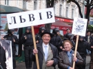 Жителі Львова також приїхали відстоювати свою точку зору на боці Вітренко. Веселий ветеран Радянської армії урочисто тримає табличку, на якій написано, звідки він родом.