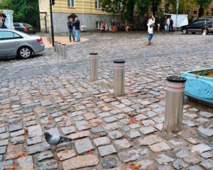 На Андріївському узвозі вже не вперше ламають боларди. Так водій інкасаторської машини пошкодив одного з них, коли хотів проскочити обмежувачі руху.