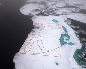 Ірландський художник Джон Квіглі відтворив на льодах Північного льодовитого океану багаторазово збільшену копію малюнка Леонардо да Вінчі "Вітрувіанська людина", повідомляє Agence France-Presse. Гігантскую картину, названу "Тануча Вітрувіанська людина", виклали на крижині між Шпіцбергеном і Гренландією за 800 кілометрів від північного полюса. Для створення контурів використовували мідні листи, які зазвичай служать заготовками для виробництва сонячних батарей.