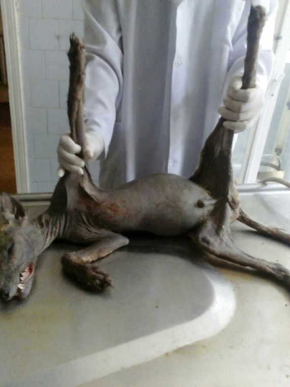 Істота мала довгий тулуб і хвіст, дуже гострі зуби, розказали місцеві. Мертвого звіра забрали на дослідження ветеринари. Ті підтвердили, що вбита тварина — ще немає наукової назви.