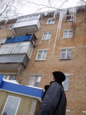 На одній з п"ятиповерхівок в центрі міста Кам"янка Черкаської області бурулька виросла так, що сягнула від даху до вікна на другому поверсі.
