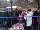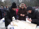 Неподалік від сцени облаштовують місце для видачі безкоштовної пшоняної каші. За 5 хвилин стоїть черга з 50 чоловік.