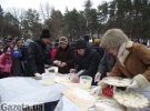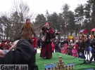 Ведуча зі сцени запрошує всіх покататися на Масляному возі. Вартість з однієї особи – 15 гривень.