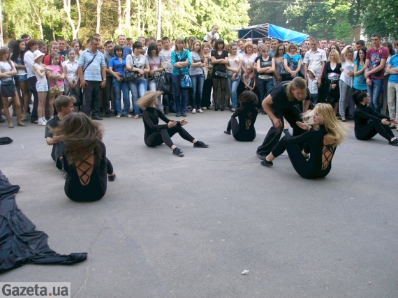 На Театральній площі пригощали випічкою студенти Вінницького професійного училища сфери послуг. А їх колеги з іншого факультету демонстрували у цей час моделі одягу. Молодь схвально вигукувала, коли на подіум вийшли хлопці.