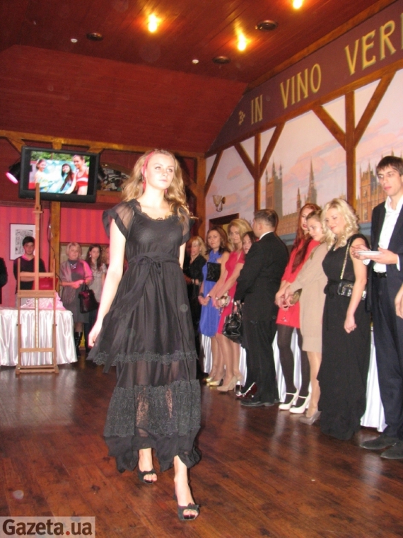 Спершу гостям представили колекцію суконь від Олени Даць. Одну із цих суконь пізніше продадуть за 700 доларів.