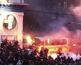 Це вже другий випадок, коли активісти "беруть у полон" міліціонера. У МВС повідомляли, що мітингувальники захопили в полон беркутівця і побили.