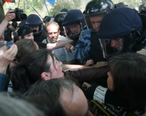 Почалася сутичка, після чого у справу втрутилася міліція. Вздовж Хрещатика припаркувалися 5 автобусів з правоохоронцями та автозак.