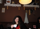 Говоримо в столичному кафе "Олива". Олена худенька, в червоній сукні та чорній кофті, на шиї чорне намисто. Замовляє офіціанту "капучіно".