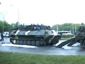 БТР, що їхав разом з колоною військової техніки, спочатку почав диміти, а потім і зовсім зупинився. Техніку довелося перевезти на площу Бангалор, щоб не перешкоджати подальшому руху машин.