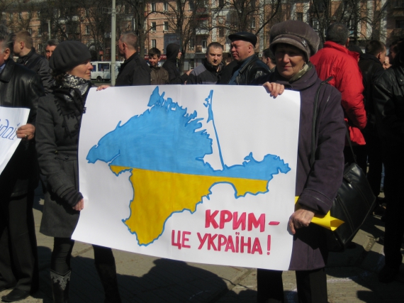 Перед початком траурно-молитовного Віче у Полтаві, місцеві активісти влаштували флешмоб. Із блакитними та жовтими аркушами вони вишикувалися на площі перед облдержадміністрацією у формі Кримського півострову. Люди скандували: "Полтава з Кримом!", "Крим-це Україна!". На завершення акції полтавці заспівали гімн України.