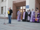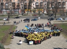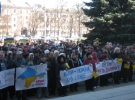 "Полтава не визнає та гостро засуджує анексію Криму. Цією акцією ми хочемо звернутися до кримчан, підтримати їх. Сказати, що ми разом з ними, ми - єдина українська родина", - каже у мікрофон народний депутат від ВО "Свобода" Юрій Бублик.