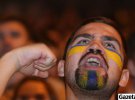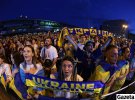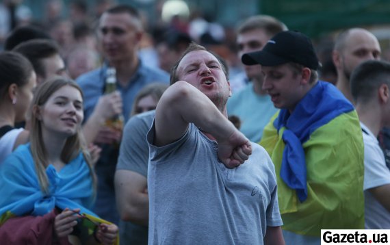 Другий гол пропускаємо на початку другої частини матчу. У багатьох фанів в очах видніється відчай. Коли пропускаємо втретє – фан-зону покидають перші вболівальники. Спішать у сторону станцій метро. Кілька чоловіків біля входу до Палацу спорту починають співати гімн України. Їм вторять кілька десятків голосів.