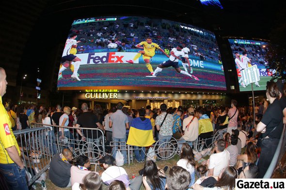 В Україні на гру з англійцями у багатьох містах організували фан-зони – облаштували площі великими екранами, на яких транслювали гру. У Києві найбільші монітори працювали над входом у торговельно-розважальний центр Gulliver. Збірну України прийшли підтримати тисячі людей, які сиділи і стояли у фан-зоні біля ТРЦ.