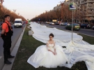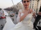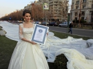 У Бухаресті пошили "рекордну" весільну сукню зі шлейфом завдовжки в 2 тисячі 750 метрів. 17-річна модель Емма демонструвала сукню просто в центрі міста, для того щоб глядачі змогли належним чином оцінити довжину шлейфу, Емму посадили до кошика повітряної кулі та підняли на кількасот метрів над землею.
