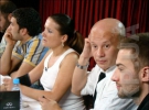 У самому залі панувала не менш напружена атмосфера. Ще б! Оглядини претендентів проводила "залізна" леді українського шоу-бізнесу, музичний продюсер "Фабрики" Наталя Могилевська. Відчувалося, співачці не уперше працювати з молодими талантами.