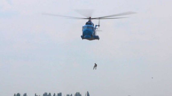 "Пошуково-рятувальним вертольотом Мі-14 було виконано підйом людей, які зазнають лиха. Перед цим літак АН-2 виконав десантування парашутно-рятувальної групи в місце, де інша бригада, умовно, терпить лихо", - розповів підполковник Збройних Сил України Микола Лескач.