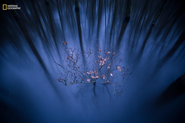 "Боротьба за життя". Перше місце в категорії "Пейзаж". Джейкоб Каптайн кілька разів фотографував цей бук в лісі (Нідерланди). Щоб створити цей знімок, він більше години простояв у холодній воді.