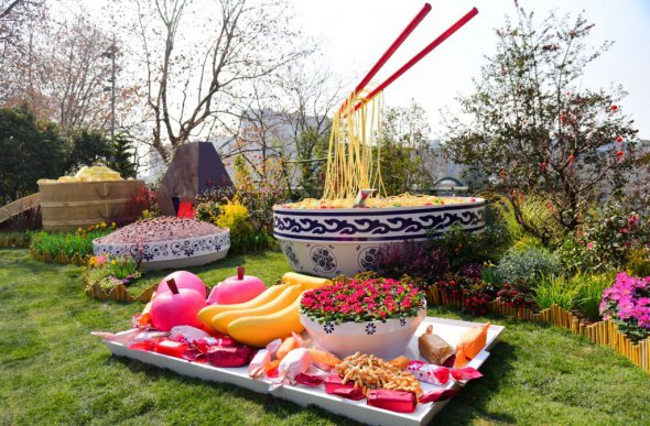 Перед початком святкування китайського Нового року в місті Ханчжоу 21 січня встановили інсталяцію, яка символізує святкову вечерю.