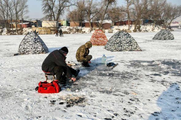 В Запоріжжі чоловіки зібрались на зимову риболовлю 20 січня.
