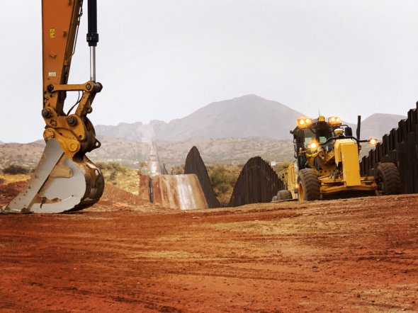 Спецтехніка переміщує ділянки прикордонної стіни в хуторі Сасабе, американського штату Арізона 20 січня. Роботи почалися після розпорядження новообраного президента США Джо Байдена, яким призупинив будівництво стіни вздовж кордону між Штатами та Мексикою.