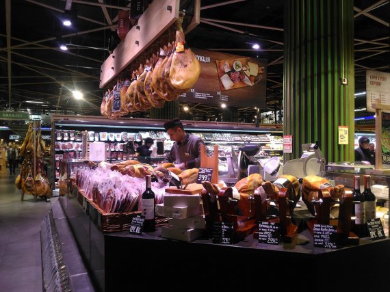 "Ой, запрещьоночка! Відділ хамон. Як живі! Ніби й не знають, що в Росії вони давним-давно потрапили під контрсанкціі, як агенти підступного Заходу. Ну нічого, хоча б Крим встигли врятувати від їх згубного аромату. А тут вони нахабно продаються цілими і нарізаними - бульдозера на них немає", - описав блогер на своєму сайті різні види іспанського хамону на полицях.