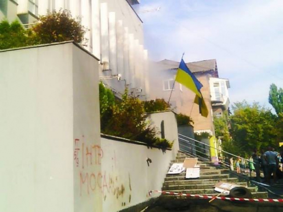 Як свідчать фото, викладені Панасюк, редакцію підпалили люди, які вважають канал рупором Кремля. На будівлі є відповідний напис. На одній з фотографій патрульні поліцейські затримують чоловіка. У будівлі також підпалили шини.