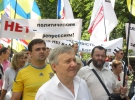 На мітинг з нагоди Дня Незалежності в Донецьку прийшло близько 200 місцевих опозиціонерів і активних городян. Люди тримали плакати: "Ні репресіям", "Юлі волю!", Та інші.