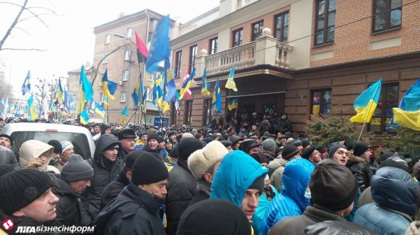 Учасники Майдану пікетують також будівлю на вулиці Різницька, де розміщується офіс братів Клюєвих. Люди скандують "Клюєв, здавайся!" і "Банду - геть!"