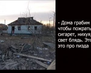 "Будинки грабуємо, щоб пожерти, б**я, ні цигарок – ні*уя, чай куримо. Це п**ець. Тут ми мопед сп**ли, поїхали в магазин, пограбували, набрали синьки, в**али, вчора хату пограбували, курку замаринували, поїли. Два ешелони 8 вагонів "200" із усіх бригад яких тут 8 штук, відправили додому! Просто їдеш, дивишся у вікно – трупаки валяються наші пацани. Тут офіцери вішаються, самі собі в ноги стріляють, щоб їх відвезли, їх до Москви, до Пітера, їх підшивають і назад сюди відправляють довб**ів", - каже російський військовий.