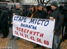 Протестувальники тримали у руках плакати "Старе місто вимагає повернути 7А, 14, 21, 43, 56, 69", "Вова, де ж Совість?", "Шановний Володимире Борисовичу, залиш людям Право Вибору!", "Гройсман, не лізь у наш гаманець!" та інші.
