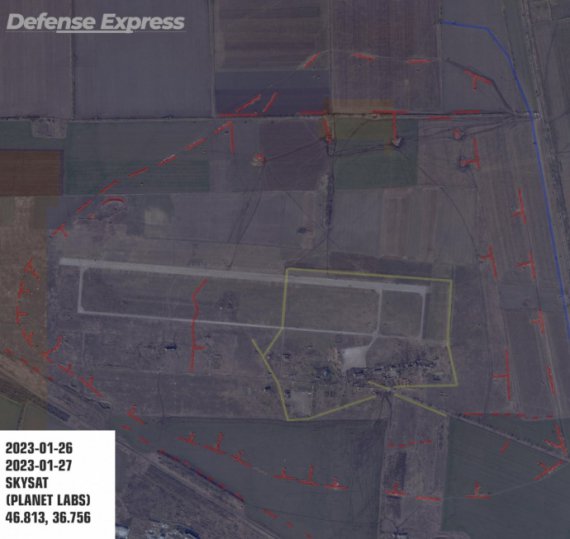Весь аеродром по 15-км периметру обнесли окопами, траншеями та окремими позиціями, включно з укриттями для техніки.