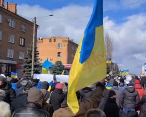 Тисячі людей йдуть вулицями міста. Несуть державні прапори, співають гімн та вимагають окупатнів піти геть.