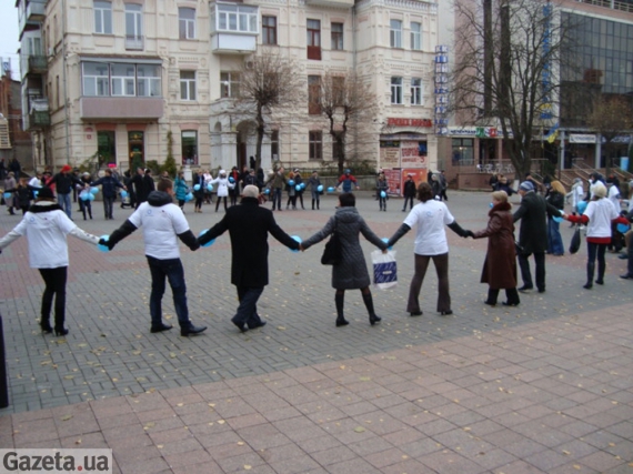Завершилося дійство флешмобом, який організували волонтери благодійної організації „Бригантина" та всі охочі, створивши одне велике коло в сквері Козицького.