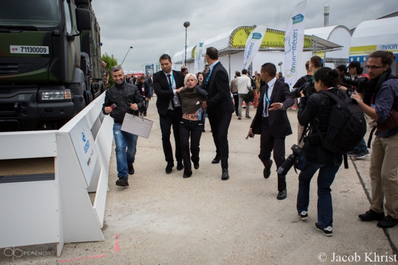 "Тільки що дві секстремісткі Femen атакували президента Франції Франсуа Олланда під час відвідин останнім ювілейного п'ятдесятого авіаційного салону Ле Бурже", - йдеться в повідомленні. При наближенні Олланда напівоголені активістки кинулися до нього з криками "Свобода", але були оперативно затримані співробітниками служби безпеки, передає Reuters.