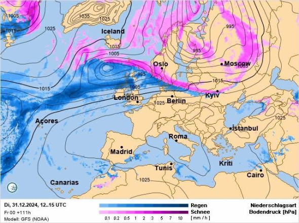 "Оскільки над Україною синоптичну ситуацію 28-29 грудня визначатиме антициклон то й навіть вітру якогось виразного не буде, невеликий, максимум помірний. Температура повітря як приклеїлася до нуля і невеликих "плюсів", так і тримається. Зазираючи наперед, у Новий рік, можна побачити, що 31 грудня передбачається малесеньке зниження температури повітяр і на півночі України, включно з Києвом, та на північному сході є ймовірність опадів у вигляді хоча б мокрого снігу", - написала вона.