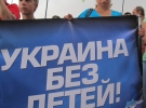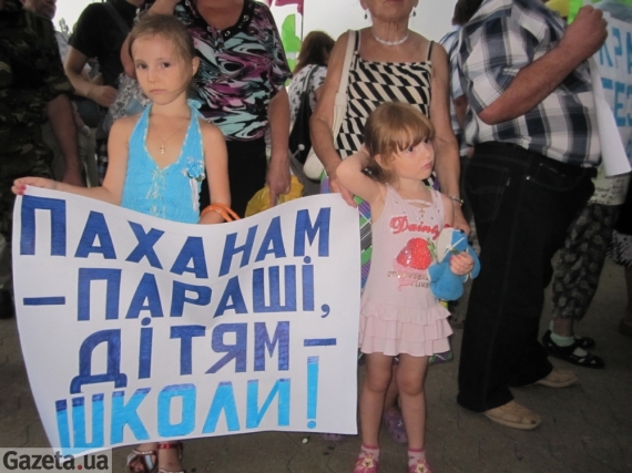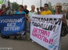 "Паханам - параші, дітям - школи", "Україна без дітей", - з подібними плакатами прийшли сьогодні до Донецької облдержадміністрації батьки ліквідованих на Донбасі україномовних шкіл № 3, 27, 100 міста Макіївка і № 111 міста Донецька.