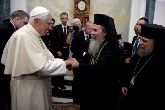 В останній день тижневого паломництва у Святу Землю глава католицької церкви зустрівся з греко-православним патріархом Єрусалиму Феофілом III.