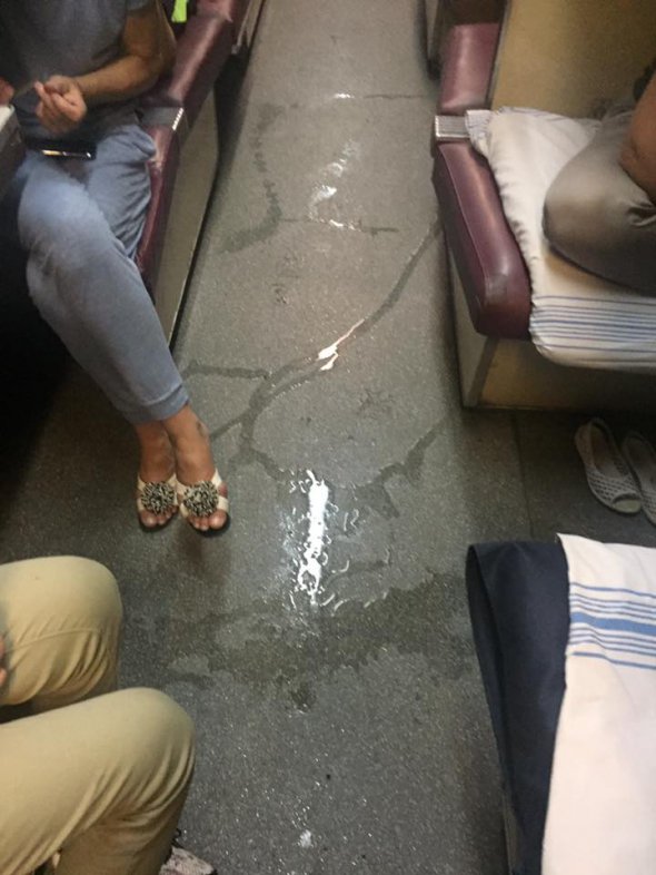 На фотографіях, викладених в соцмережі видно, як вода тече по підлозі і стінах плацкартного вагона.