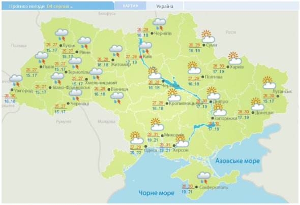 У суботу, 4 серпня, на західну і північну частину країни, прийдуть дощі, а з ними і можливе зниження температури на 1-2 градуси. На іншій території - така ж спека до +28…+31 градусів.