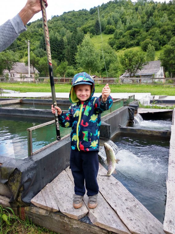 " Це американський проект ферми. Вода в басейни тече з гірської річки, тому має приблизно однакову температуру влітку і взимку. Через це форель дуже смачна. Розводити цю рибу можна будь- де, але не скрізь ця риба така популярна. Наприклад, знайомі відкрили подібну ферму на Вінниччині, але там не цінують цей вид. Місцеві їдять карася, коропа, щуку.