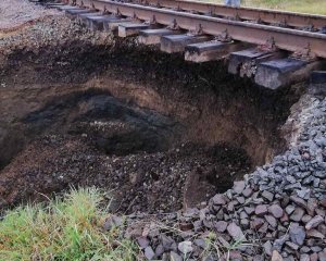 Унаслідок складного просідання ґрунту утворилася яма глибиною 6 м, повідомляє Укрзалізниця в Telegram. Відновлювальні роботи триватимуть щонайменше 10 год.