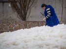 "Хвилі спінюють морську воду. У деяких місцях піною покриті цілі пляжі. Відпочиваючих дуже мало, і чайки можуть розслабитися і спокійно милуватися стихією", - пише видання.