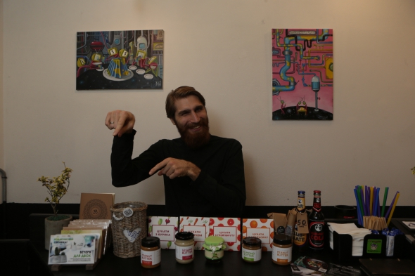 У своєму веганському кафе One Planet на столичній вулиці Кожум'яцькій Павло Вишебаба готує вранці какао з соєвим молоком. У сусідній залі роблять веганські десерти без яєць і вершкового масла. Сьогодні день вегана і ними частуватимуть усіх відвідувачів.