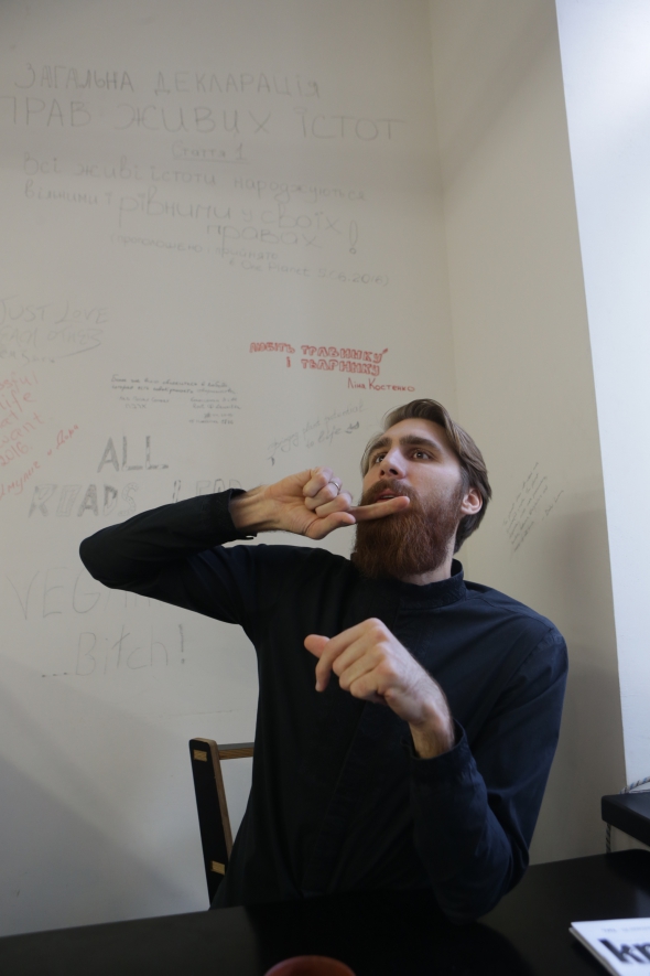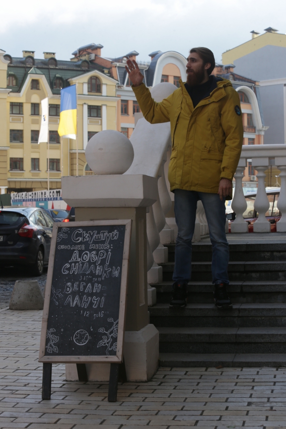 Ще одна частина принципів, на яких ми об'єднуємося, — це захист прав веганів і вегетаріанців. У Києві веганом бути легко. Є все, що тобі треба. У тих самих Черкасах значно складніше. Я вже мовчу про мій рідний Краматорськ. Немає продуктів, які необхідні для заміни м'яса. Звичайно, завжди можна знайти овочі і фрукти. Але хочеться, щоб раціон був широкий. Щоб людина ні від чого не відмовлялася, а навпаки - щоб вона отримала свято їжі. Стаєш веганем — і всього стає багато.